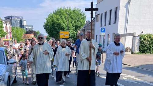 Fronleichnamprozession mit anschließender Messe am Kindergarten