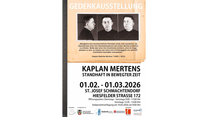 Gedenkausstellung „Kaplan Mertens - Standhaft in bewegter Zeit“ - 01.02. bis 01.03.2026 in Schmachtendorf