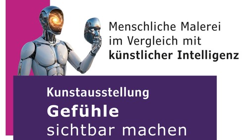 Vergleichend entstanden ähnliche Beschreibungen der Gefühle auch durch KI. Die KI nutzt große Mengen online verfügbarer Daten und erzeugt Darstellungen basierend auf statistischen Mustern und Wahrscheinlichkeiten. Die entsprechenden KI-Bilder sind auf den Infotafeln neben den menschlichen Arbeiten zu sehen.