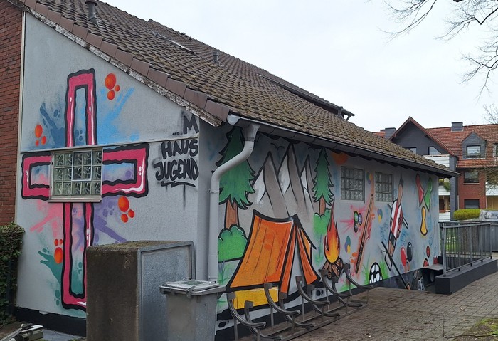 Nachdem die Roverstufe des DPSG Pfadfinder Stammes Heinrich Seuse e.V. schon im letzten Monat den Partykeller im M-Haus Jugend gestrichen, mit Inventar sowie passende Dekoration versehen hat, sollte als nächste Aktivität die Außenfassade aufgewertet werden.