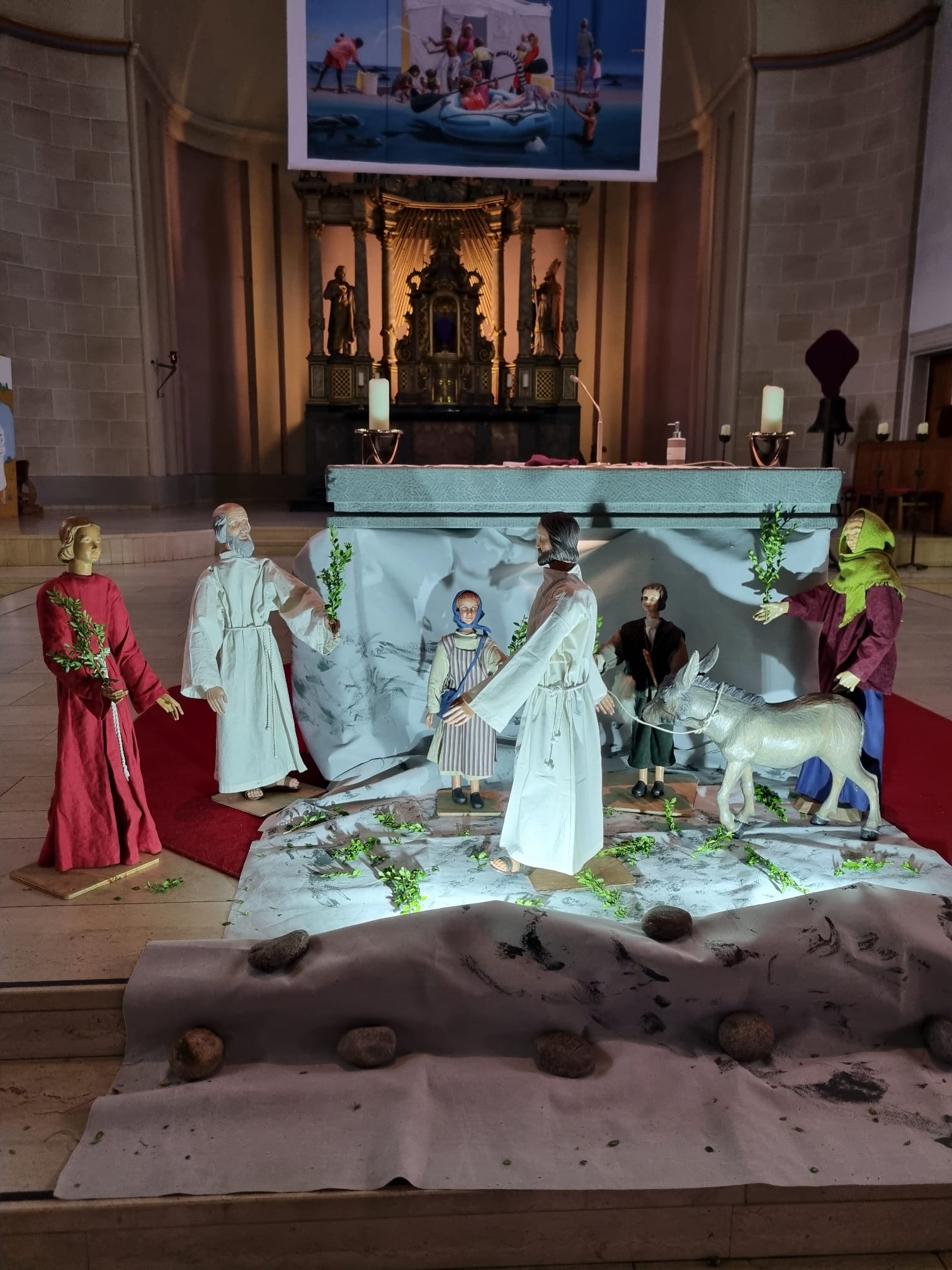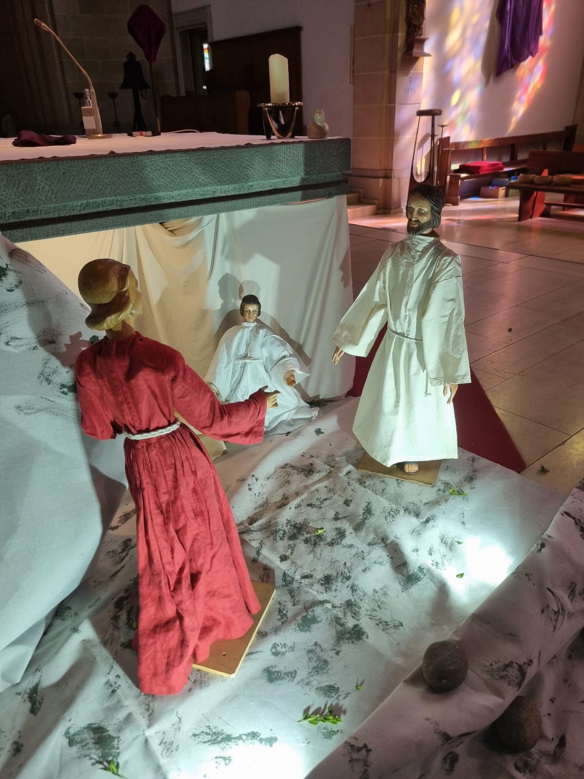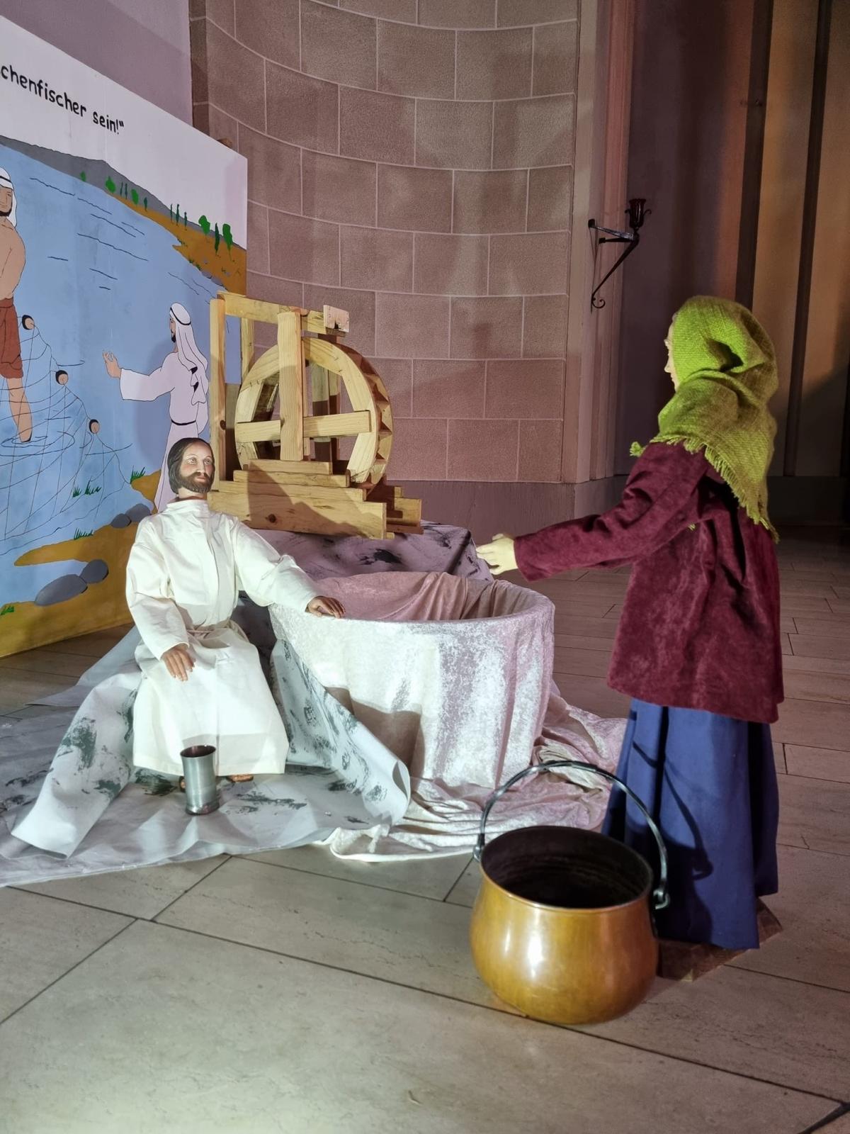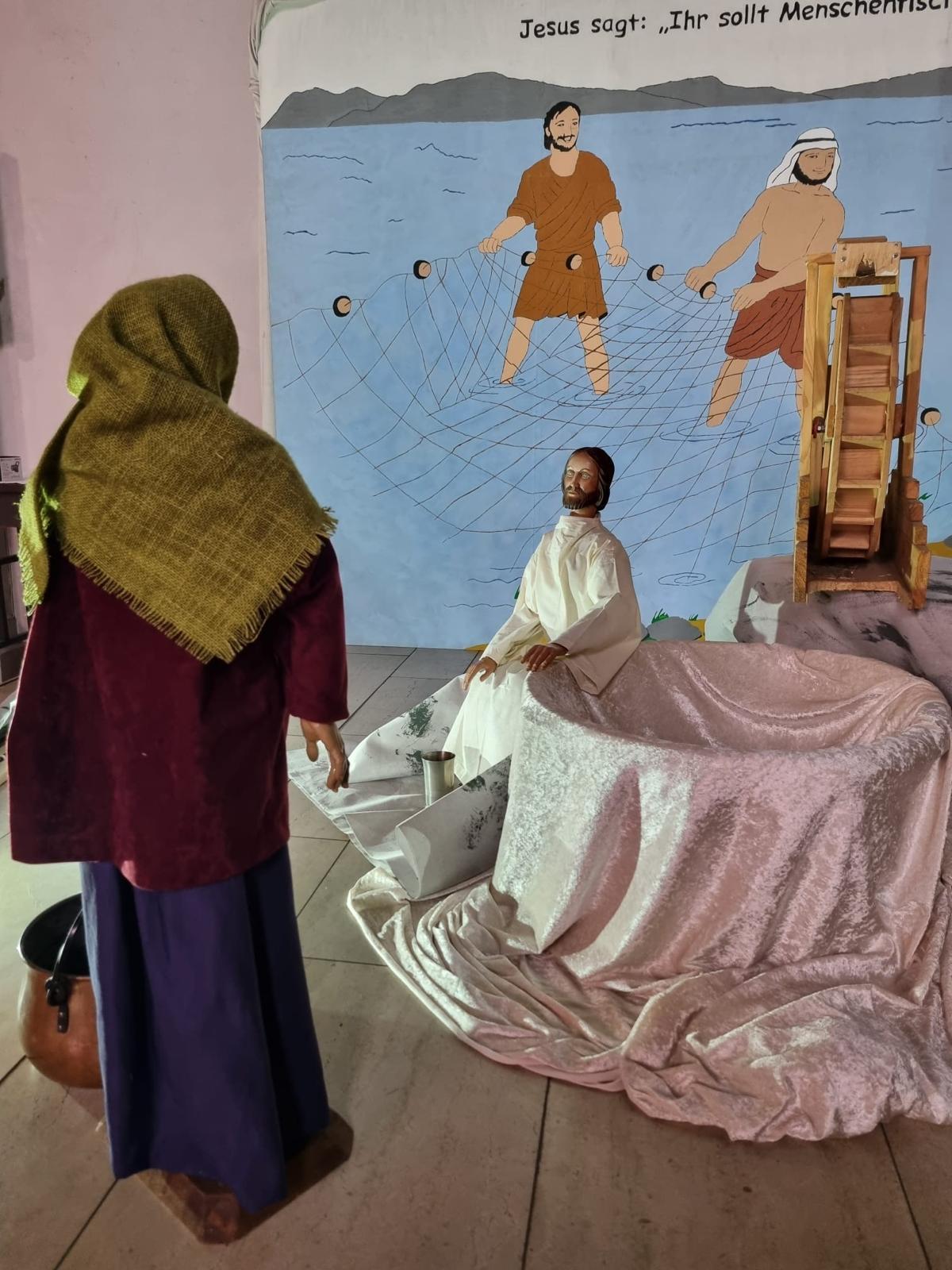 Zu den Evangelien an den Fastensonntagen stellt der Krippenkreis von St. Marien Rothebusch jeweils eine passende Motivkrippe auf, die zu den Öffnungszeiten der Kirche besucht werden kann.
